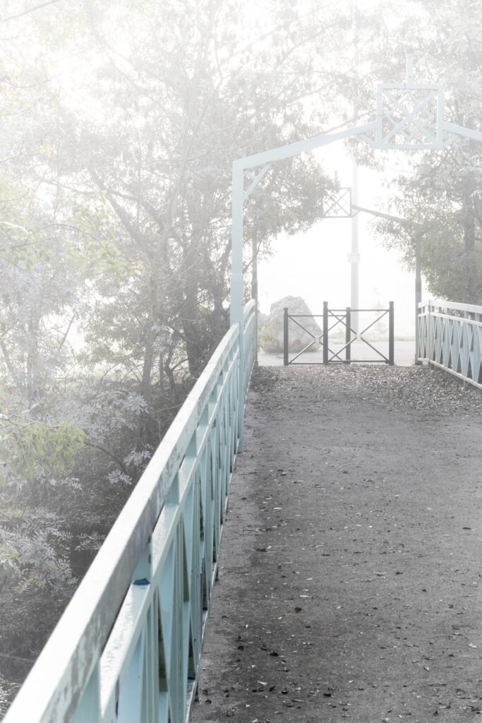 Elle descend un chemin caillouteux, croise un cheval à la robe brune. Au pied de la vallée, une grande prairie que traverse un ruisseau. Juchée sur un étroit pont de pierres, elle contemple la pluie fine tapoter la surface de l’eau, étonnamment claire.